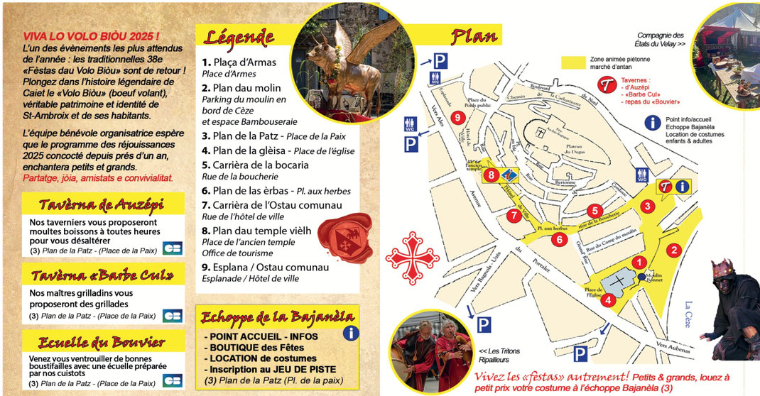 10h30 Ouverture du marché, des animations permanentes et de rue, tavèrna de Auzèpi, des ateliers pour enfants... /Obertura del mercat, de las animacions permanentas e de carrièra, tavèrna d'Auzèpi, dels talhièrs per mainatges...