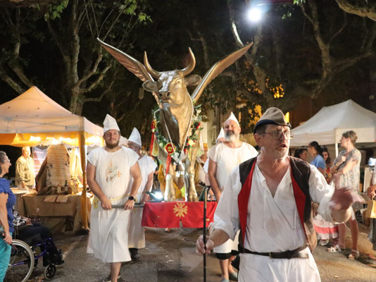 23h00 Place de l’esplanade > Départ de la procession du Volo Biòu avec « Tambor del Biòu » pour marquer le départ puis « Carabena » pour la déambulation à travers le centre ancien